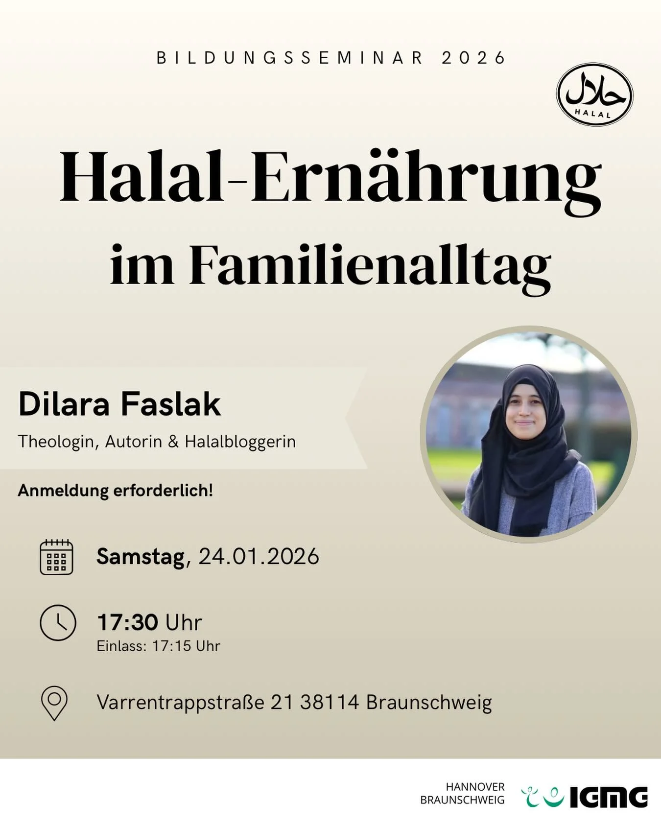 Wir erwarten euch alle zu unserem 1. Bildungsseminar 2026 zum Thema „Halal-Ernährung im Familienalltag“.🌿