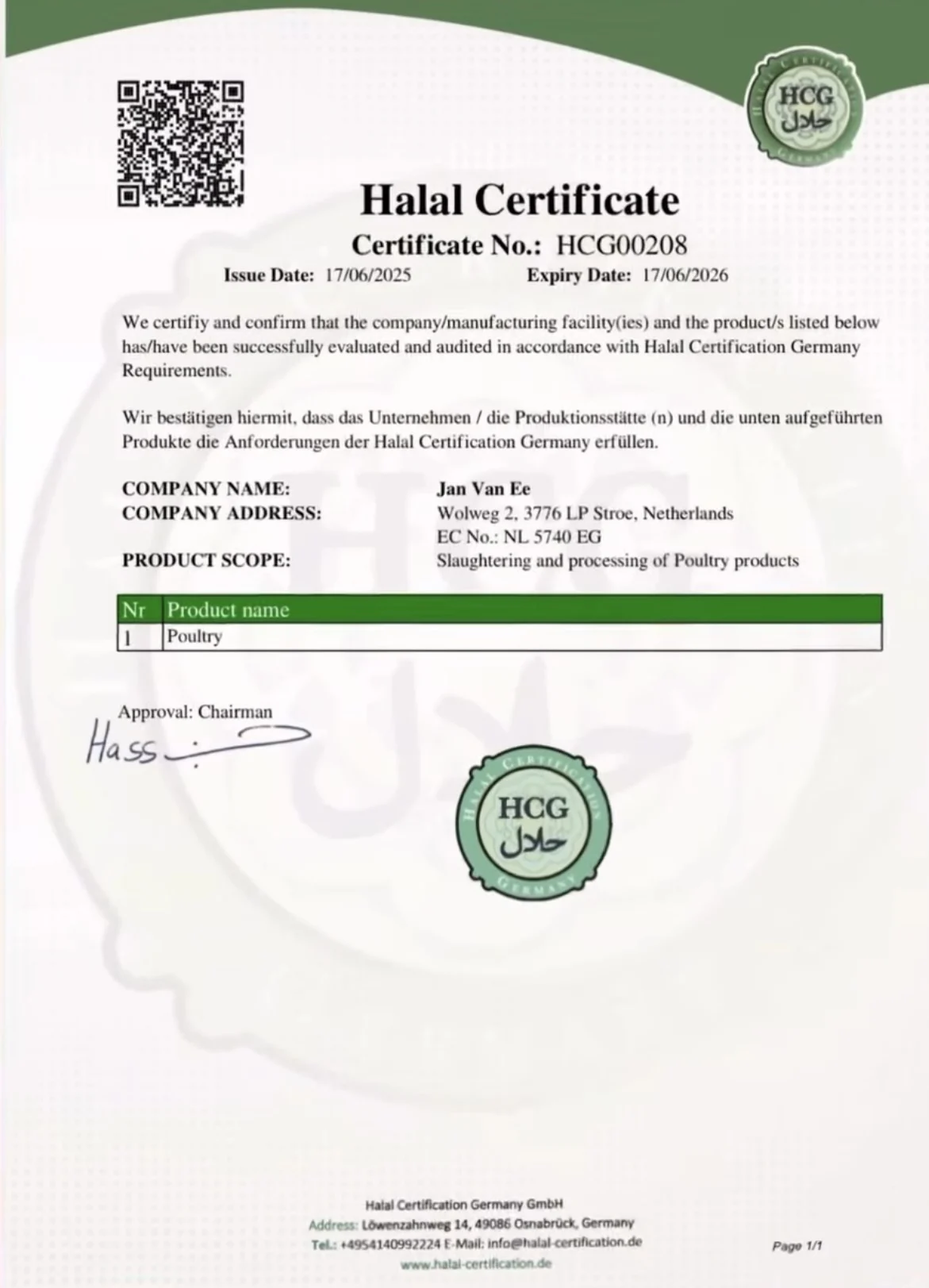 • Halal Zertifikat vor Ort einsehbar